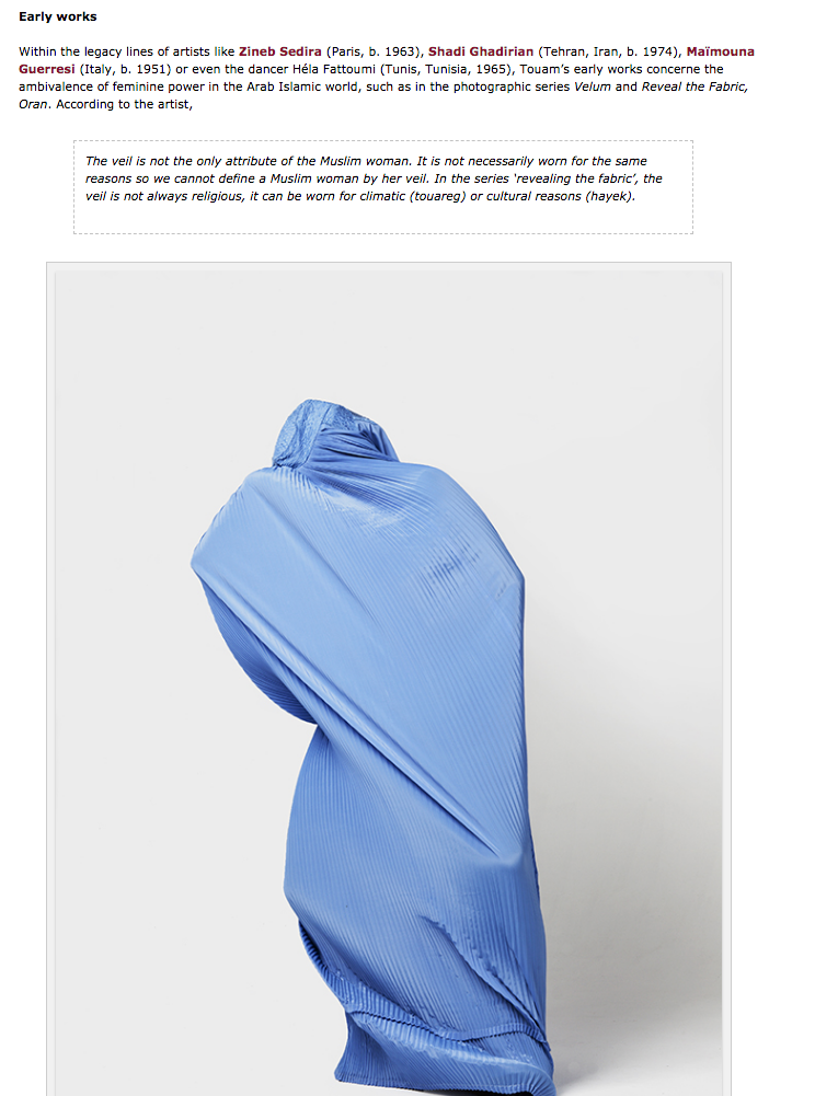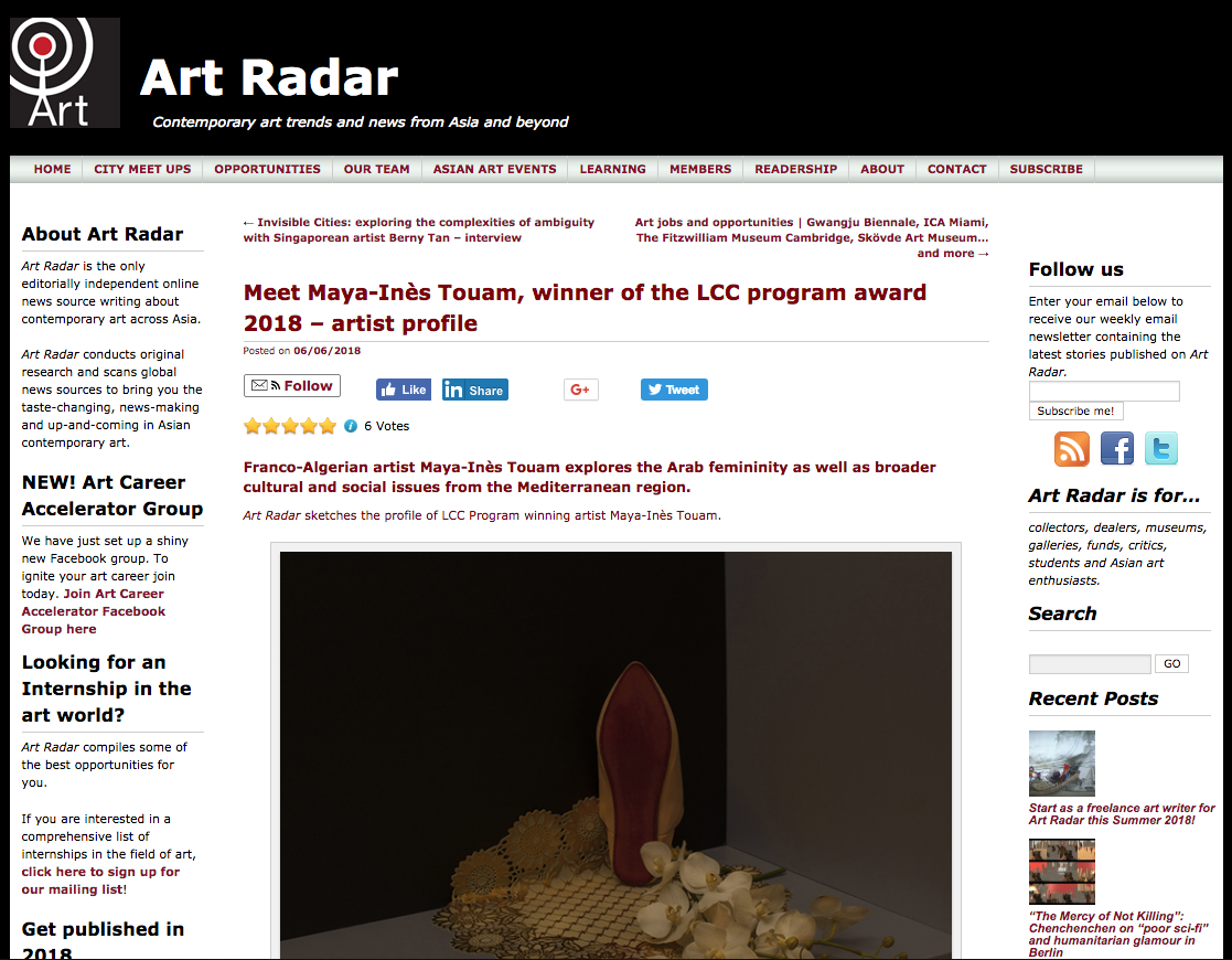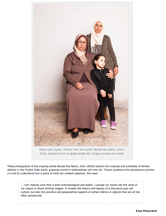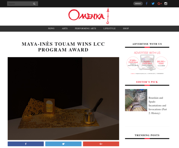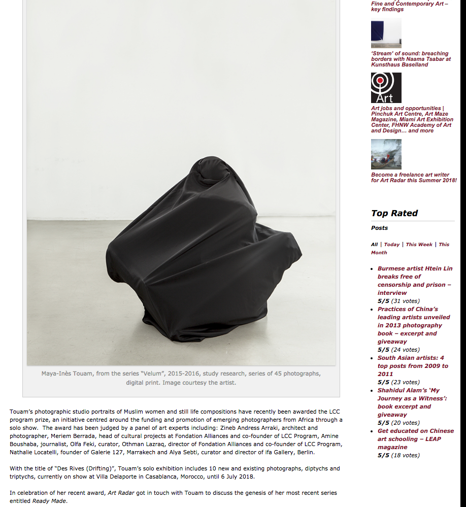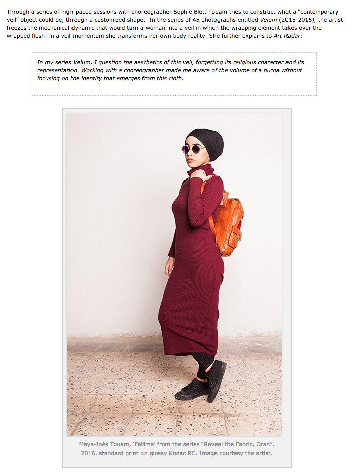 Maya-Inès Touam, récemment diplômée des Beaux-Arts de Paris, s’intéresse à l’ambivalence de la représentation de la femme dans le monde arabe. Née en France de parents algériens, son parcours individuel prime dans la définition de son identité. Depuis près de quatre ans, ses créations plastiques s’articulent autour d’une certaine imagerie féminine dans l’islam contemporain, dans la lignée d’artistes telles que Zineb Sedira, Shadi Gadirian, Maïmouna P. Guerresi ou encore la danseuse Héla Fattoumi. Par ses nombreux voyages dans les pays du MOAN et à travers différents médiums, elle questionne la féminité d’un Orient exposé aux codes de l’Occident, notamment au travers de sa série Révéler l’étoffe réalisée dans le cadre de sa thèse universitaire, avant de s’intéresser depuis 2017 à la nature morte. Ses projets artistiques naissent d’une vision, concrétisée par une série de recherches iconographiques, sémantiques et symboliques au service de compositions précises et équilibrées. Les photographies de Maya-Inès Touam ont été présentées lors d’expositions collectives aux Etats-Unis, en Europe et en Afrique du Nord, toujours accompagnée de Thomas Echegut, photographe formé par Marc Pataut et Patrick Feigenbaum. Pour sa première exposition individuelle, Maya-Inès Touam revisite avec le Lcc Program la nature morte, en bouleversant ses codes sans en extraire la charge symbolique. Elle questionne aussi les représentations culturelles véhiculées sur l’Orient et l’Occident à travers la mise en scène d’objets contemporains du quotidien.